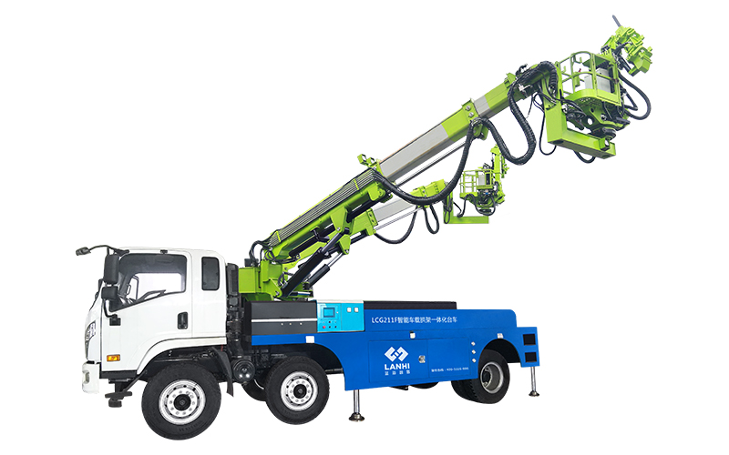 適用于礦山巷道、公路鐵路隧道、水利水電和抽水蓄能電站的拱架安裝作業(yè)、欠挖處理、隧道檢測、場內(nèi)靜態(tài)高空作業(yè)等。LCG211F智能車載拱架一體化臺車是一款運用于隧道初支作業(yè)的一體化臺車,該設(shè)備采用汽車底盤,兩臂架 結(jié)構(gòu),滿足設(shè)備靈活移動、轉(zhuǎn)場和應(yīng)急需要,各類環(huán)境場合都能可靠、高效地完成工作。臺車集鋼拱架安裝、 焊接網(wǎng)片及連接筋、開挖面測量、欠挖及排險處理等功能于一體,在減少人力成本,減少施工風(fēng)險,提高效 率的同時,實現(xiàn)隧道立拱的標準化和工廠化。