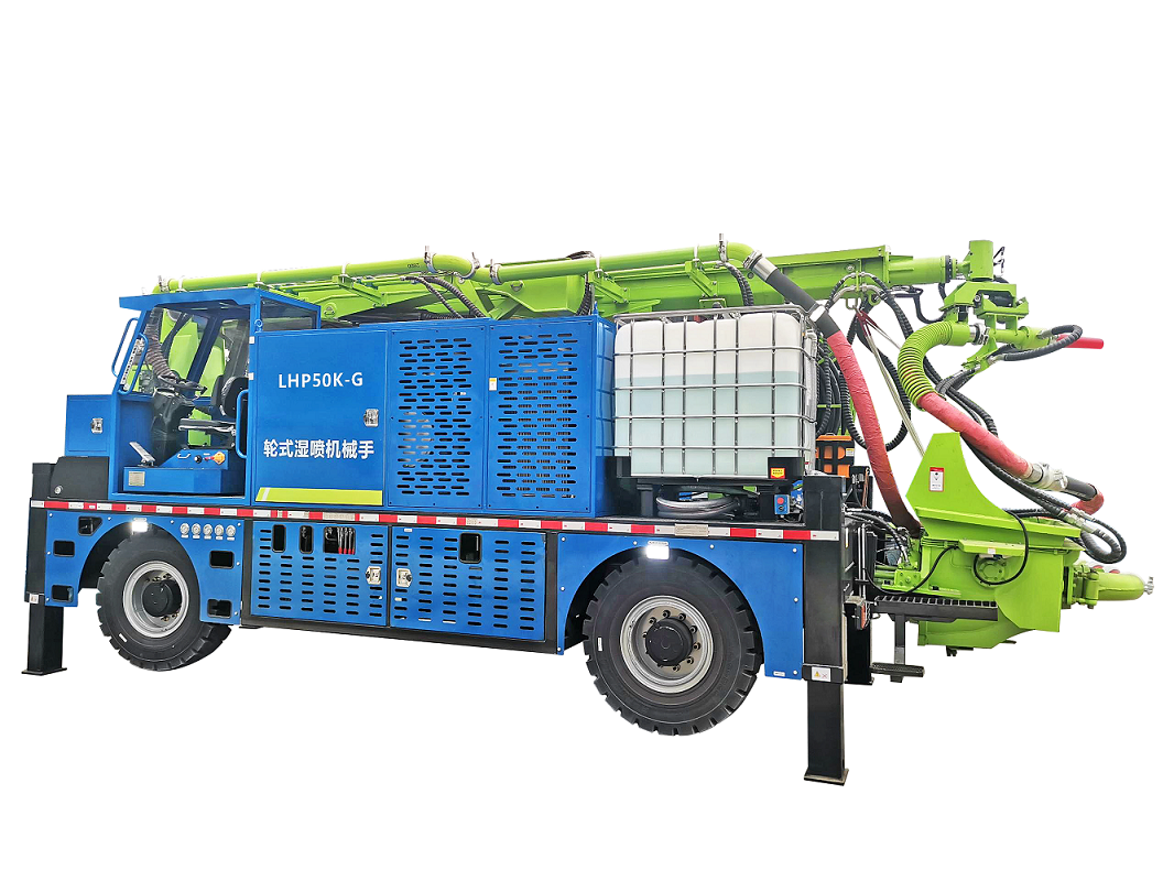 適用于公路鐵路隧道、地下洞庫、水利水電和抽水蓄能電站的隧道錨噴支護作業(yè)。LHP50K-G輪式濕噴機械手是一款綜合國內(nèi)隧道初支混凝土噴漿工藝及高海拔施工工況研發(fā)升級的一款專用設備,最大噴射方量達到50m3/h,廣泛應用于隧道工程、水利工程、市政工程、道路橋梁工程等。該設備具有噴射方量大、不易堵管、回彈低、性能穩(wěn)定可靠等特點,既適用于全斷面,也適用于半斷面 和多階梯開挖。