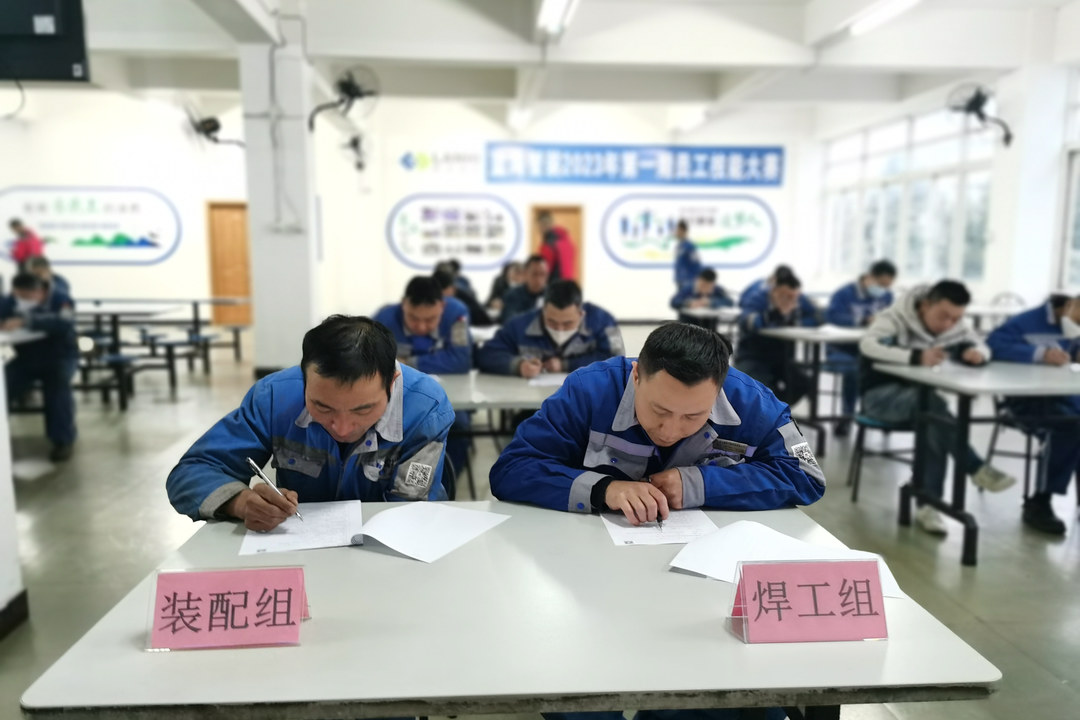 本次大賽的理論考試共有電工組、焊工組、液壓組、裝配組、油漆組參與考試,長沙子公司員工考試在長沙工廠同步進行;所有綜合組員工則通過“考試培訓云”線上考試。
