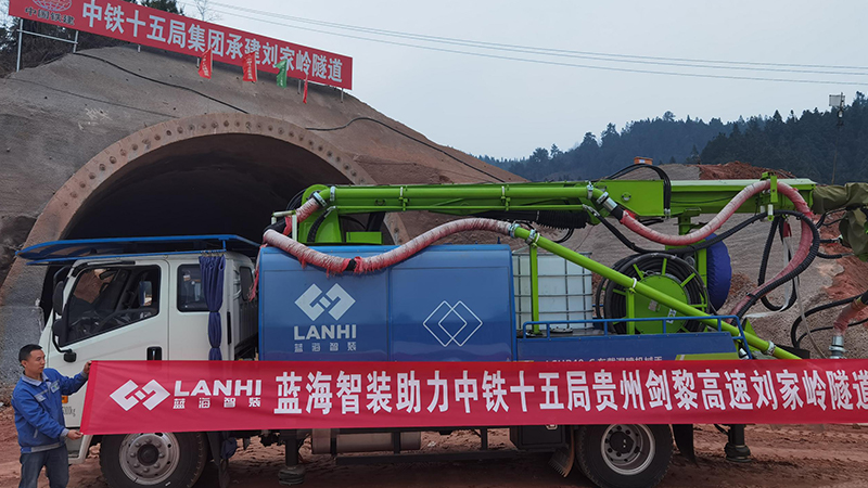 藍(lán)海智裝LCHP40C車載濕噴機(jī)械手助力中鐵十五局劍黎高速劉家?guī)X隧道建設(shè),在減少人力成本,減少施工風(fēng)險(xiǎn),提高效率的同時(shí),實(shí)現(xiàn)隧道立拱的標(biāo)準(zhǔn)化和工廠化.需