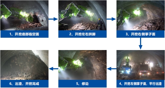 在IV、V級圍巖下綜合開挖效率可達50m³/h;